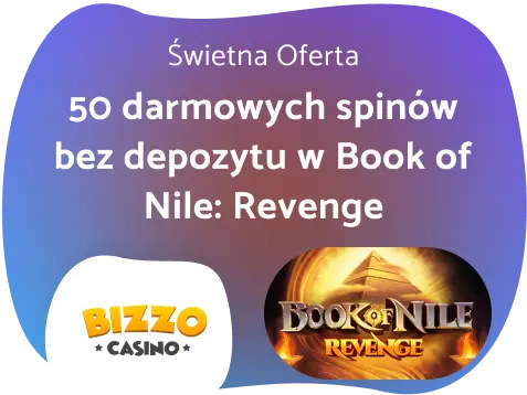 Bizzo Casino bonus bez depozytu dostępny w postaci 50 darmowych spinów. Obroty można wykorzystać na grze Book of Nile: Revenge od Netgame. Wszystkie wygrane, które uda się wylosować należy obrócić 40 razy. Na aktywację promocji masz 3 dni od momentu rejestracji, a na jej wykorzystanie – 7 dni. Maksymalna ostateczna premia wynosi 50 EUR (200 PLN).
